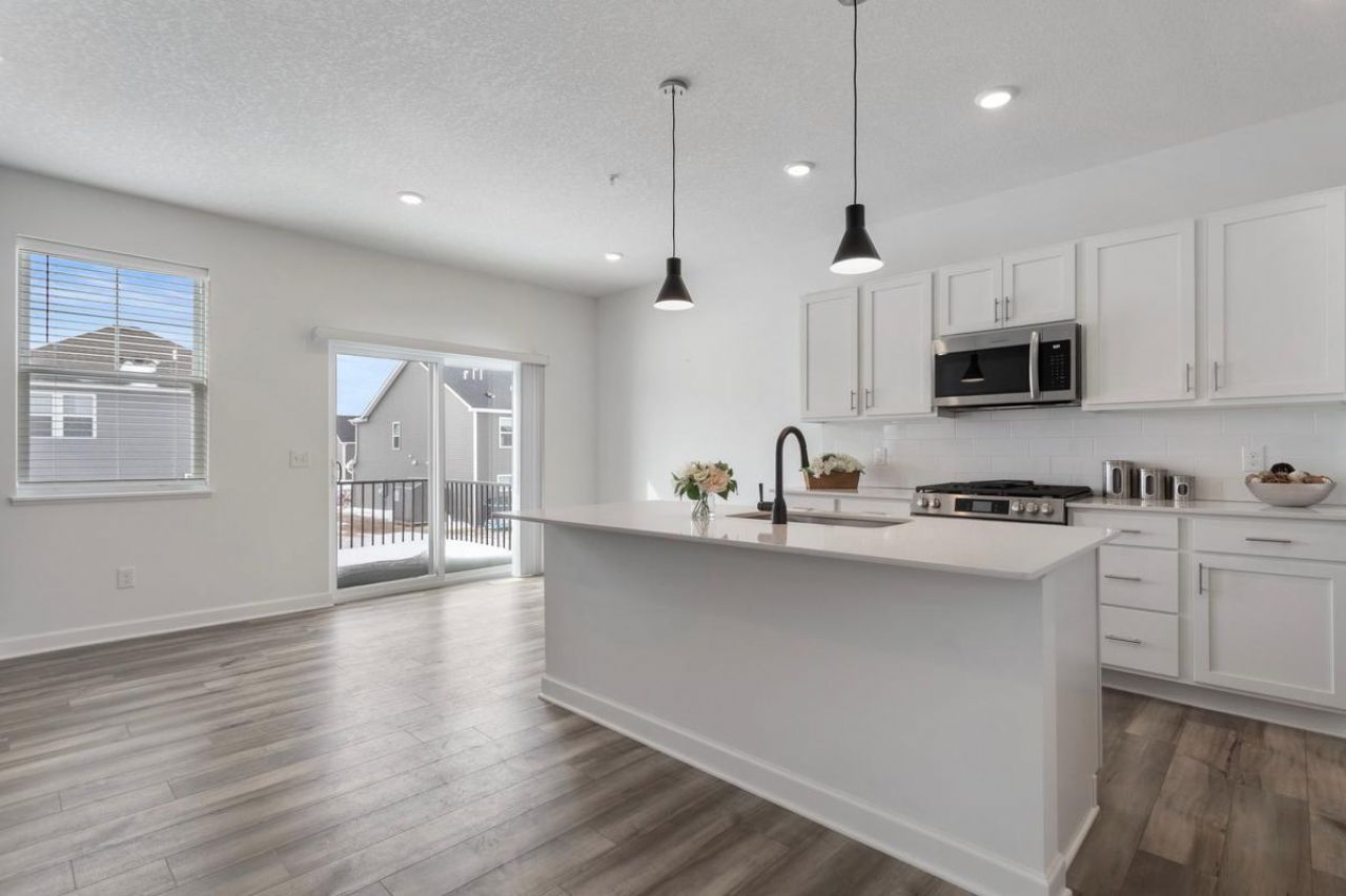 Welcome to this 2024-built townhouse that checks all the boxes?and then some. Featuring 3 bedrooms, 3 bathrooms, and a 2-car garage, this home shines with a desirable south-facing layout that brings in abundant natural light year-round. The standout feature? A rare, unfinished walkout basement?offering a blank canvas to create instant equity and customize your dream space. Modern finishes, thoughtful design, and future potential make this one a standout opportunity. Designed for both function and style, the kitchen features a large center island with an integrated sink--perfect for meal prep, entertaining, or casual dining. The South-facing orientation fills the space with natural light. Abundant cabinetry and pantry closet offers ample kitchen storage! Easy-to-clean luxury vinyl plank flooring flows throughout the kitchen, living room and dining room. The breakfast bar area makes entertaining guests easy. Designed with entertaining in mind, the expansive open-concept main floor creates an inviting flow between spaces--making it easy to host gatherings or enjoy everyday living with ease. Bright. Open. Cozy. The main level offers a large, South-facing, sun-filled living room with a warm fireplace and a wide-open layout that's perfect for relaxing or hosting. Three bedrooms and laundry all on one level! The large owner's suite is filled with natural light and there's plenty of space for your over-sized furniture! The owner's suite features a large walk-in closet and private bathroom. The private 3/4 bathroom has a spacious dual sink vanity, offering both comfort and functionality. Thoughtfully designed with modern finishes, this space provides a clean, streamlined feel-perfect for busy mornings. The upper-level full bathroom is conveniently located near the other two upper-level bedrooms. The convenient upper-level laundry room has a full-sized washer and dryer and plenty of storage space. Welcome home!