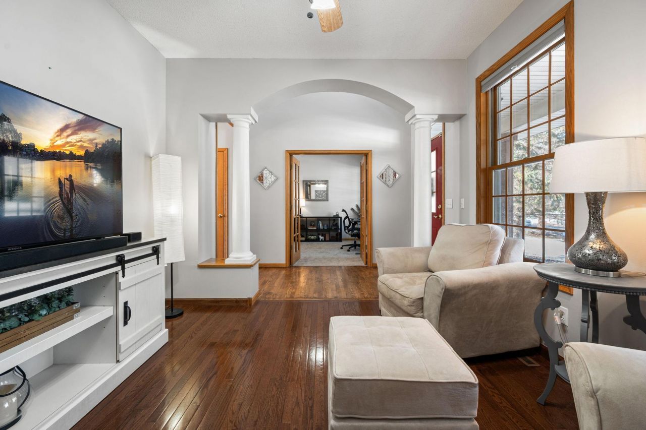Great opportunity - this lovely home really delivers with almost 4000 fin sq ft featuring 4 bedrooms, 4 baths, and a 3 car heated garage. Combining luxurious finishes with functionality, this home is in a wonderful neighborhood close to all that Andover has to offer! You'll love the full front porch, 2 story entry with hardwood floors that carry you through to an open concept layout. The entry is flanked by a light-filled office with new carpet, and a formal dining area (currently used as reading den). The gorgeous center island kitchen boasts granite counters, stainless steel appliances and gleaming hardwood floors that flow into the sun-drenched informal dining and living area with a cozy fireplace. Conveniently located off the kitchen is a spacious laundry room that features ample cabinetry and tons of built-ins and counterspace. The informal dining area has sliding doors that take you out to an oversized deck that will be a perfect spot to entertain or just enjoy views of your beautiful, landscaped yard with an invisible fence system and in-ground sprinklers - Offering plenty of space for gardens or play. The upper-level houses a lovely primary suite including a private spa-like bathroom with jetted tub, plus 2 additional bedrooms and a full bath. The lower-level walk-out offers a fantastic family room space with LVP flooring ? designed for entertaining large groups or just cozy up in front of the gas fireplace with family and friends. There is also a full bath, 4th bedroom and a dedicated study or craft room. A 3-car heated insulated garage and a backyard shed offer plenty of space for your cars, big toys and tools. Close to Parks, Trails, the Community Center, Bunker Hills, Shopping and Restaurants. Located in the highly acclaimed Andover Schools. See supplements for additional features and info on schools. Don't miss out on this updated move-in ready home!