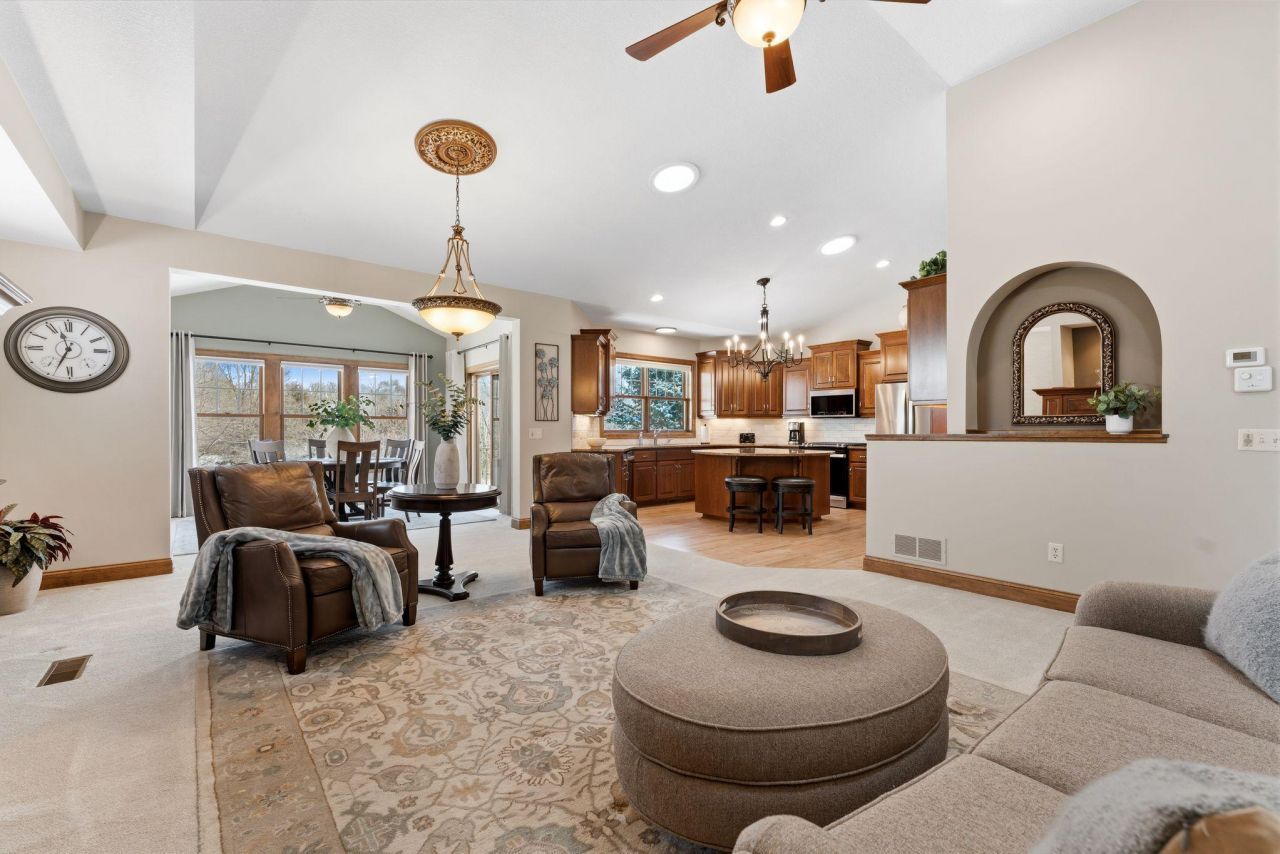 Exceptional main-level living with a beautifully finished walkout lower level, meticulously maintained and thoughtfully upgraded throughout. Set on a private lot backing to a protected nature and wildlife area that can never be built on, this home offers rare, permanent backyard privacy. Built in 2007 with over 3,200 finished square feet, the home showcases 9 foot ceilings, rich cherry and maple custom millwork, extensive built-ins, a wet bar, and two gas fireplaces. The open, functional layout is ideal for both everyday living and effortless entertaining. Extensive preventative maintenance and major system updates provide true peace of mind, including a newer roof, siding, gutters, appliances, HVAC, water heater, well pump, deck surface and railing, plus a beautifully remodeled primary bath. Every wall and ceiling has been refreshed, complemented by newer carpet and tasteful kitchen updates. The bright walkout lower level offers flexible living space with custom built-ins and direct access to the private backyard overlooking the natural setting. Additional highlights include a 220V-wired garage with overhead storage, Venmar air exchanger, and Kinetico reverse osmosis system. A rare opportunity to own a pristine, move-in ready home offering exceptional care, permanent privacy and no deferred maintenance.