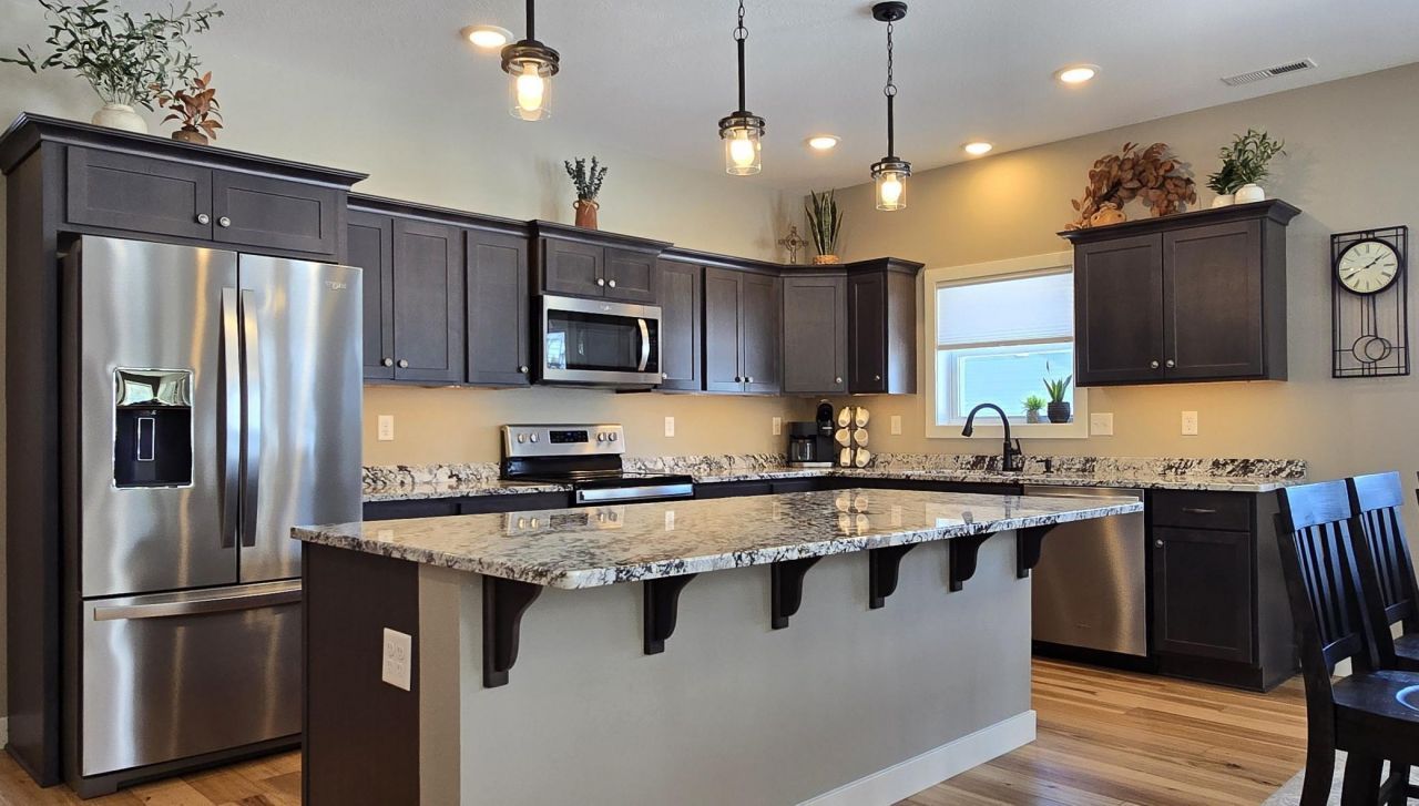 Custom built in 2022, this exquisite residence combines modern living with thoughtful design and high-quality materials. Boasting three spacious bedrooms and three bathrooms, the home is crafted for convenience, style, and comfort. The main level is designed for effortless one-level living grounded with warm hickory flooring and a marble clad gas fireplace. The primary bedroom comfortably accommodates a king-size bed and is complete with a private bathroom and walk-in closet. The ensuite has elegantly tiled floors, a soaking tub and a glass-enclosed tiled shower providing a spa-like retreat. Additionally, the main floor includes a laundry room and office space, perfect for remote work or quiet study. The heart of a home is always the kitchen, and this one is centered around a stunning granite covered island measuring 8 feet by 4 feet. This impressive centerpiece complements the stainless-steel appliances and extensive cabinetry equipped with soft-close drawers. Upstairs, two additional bedrooms share a full bath, providing privacy and comfort for family members or guests. The asphalt driveway leads to your attached, finished and heated 2 stall garage. Enjoy the outdoors from either the covered front porch or the covered back patio. This residence exemplifies thoughtful design and quality craftsmanship and offers a comfortable lifestyle for its future owners. Discerning buyers will appreciate.